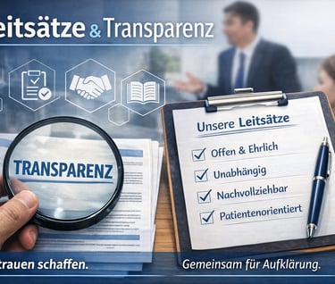 Unser Selbstverständnis gründet auf offener Kommunikation, nachvollziehbaren Positionen und der konsequenten Orientierung an wissenschaftlichen, medizinischen und rechtlichen Standards.